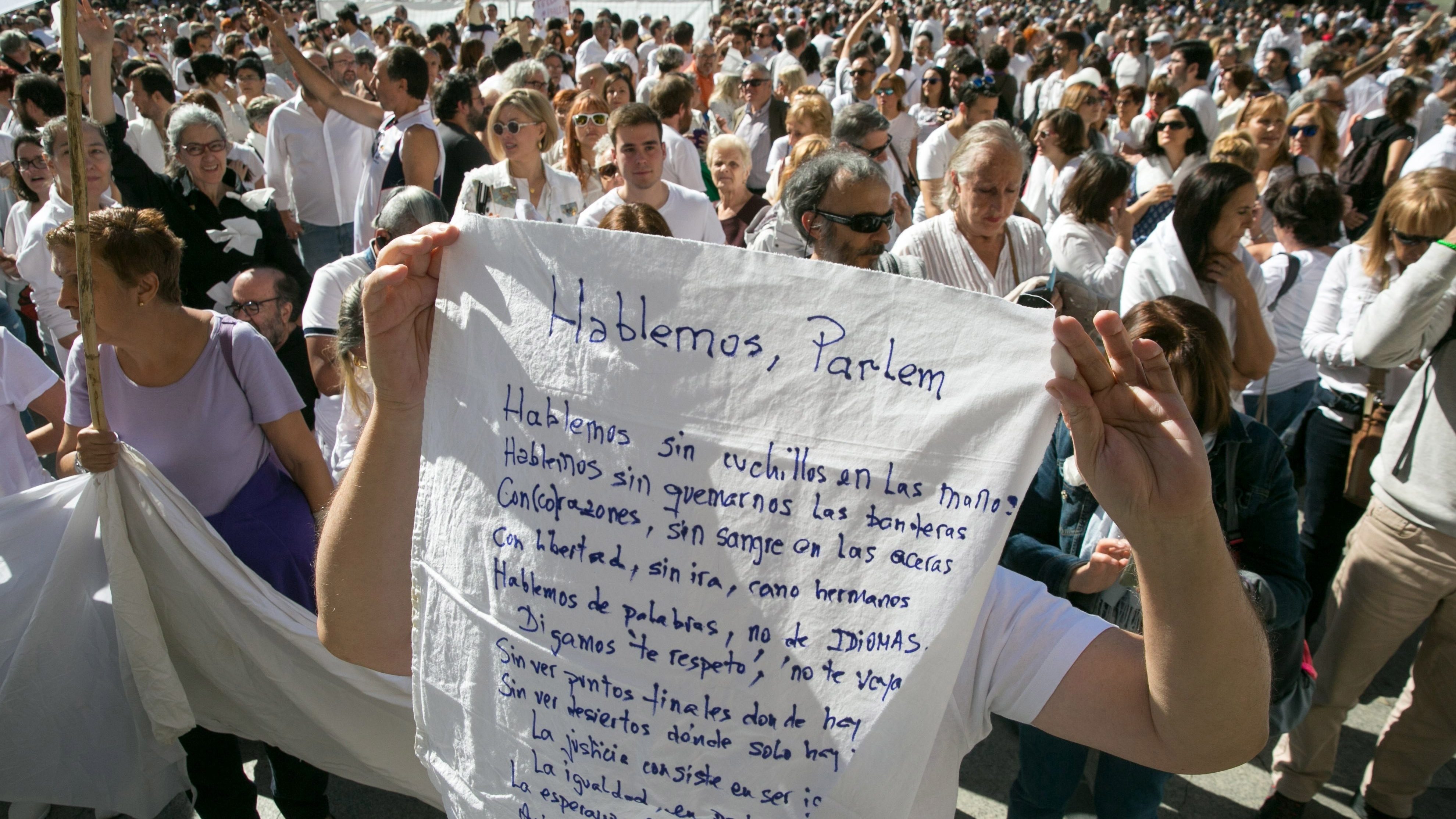 A manifestação teve início na praça Urquinaona, no centro de Barcelona, sob o lema “Basta! Vamos recuperar o bom senso”. Os manifestantes, entre os quais se contavam políticos do Partido Popular, Cidadãos e Partido Socialista Catalão, seguiram depois para a estação de Francia, onde foi lido um manifesto.