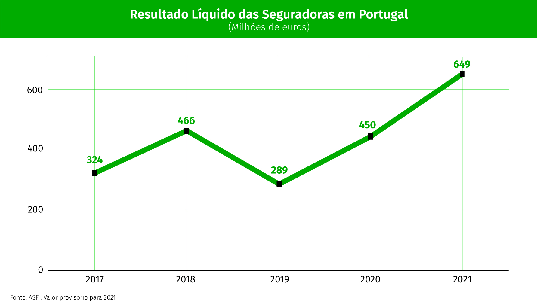 Os resultados líquidos provisórios das empresas de seguros sob supervisão prudencial da ASF ultrapassaram o valor de 649 milhões de euros em 2021 e das 38 empresas de seguros, 37 apresentam valores positivos, indica a ASF, entidade supervisora do setor segurador e dos fundos de pensões, no seu Relatório de Evolução da Atividade Seguradora relativo ao 4º trimestre de 2021, publicado esta quarta-feira e que resume a atividade de todo o ano passado. Os resultados definitivos por seguradora ainda não são conhecidos.