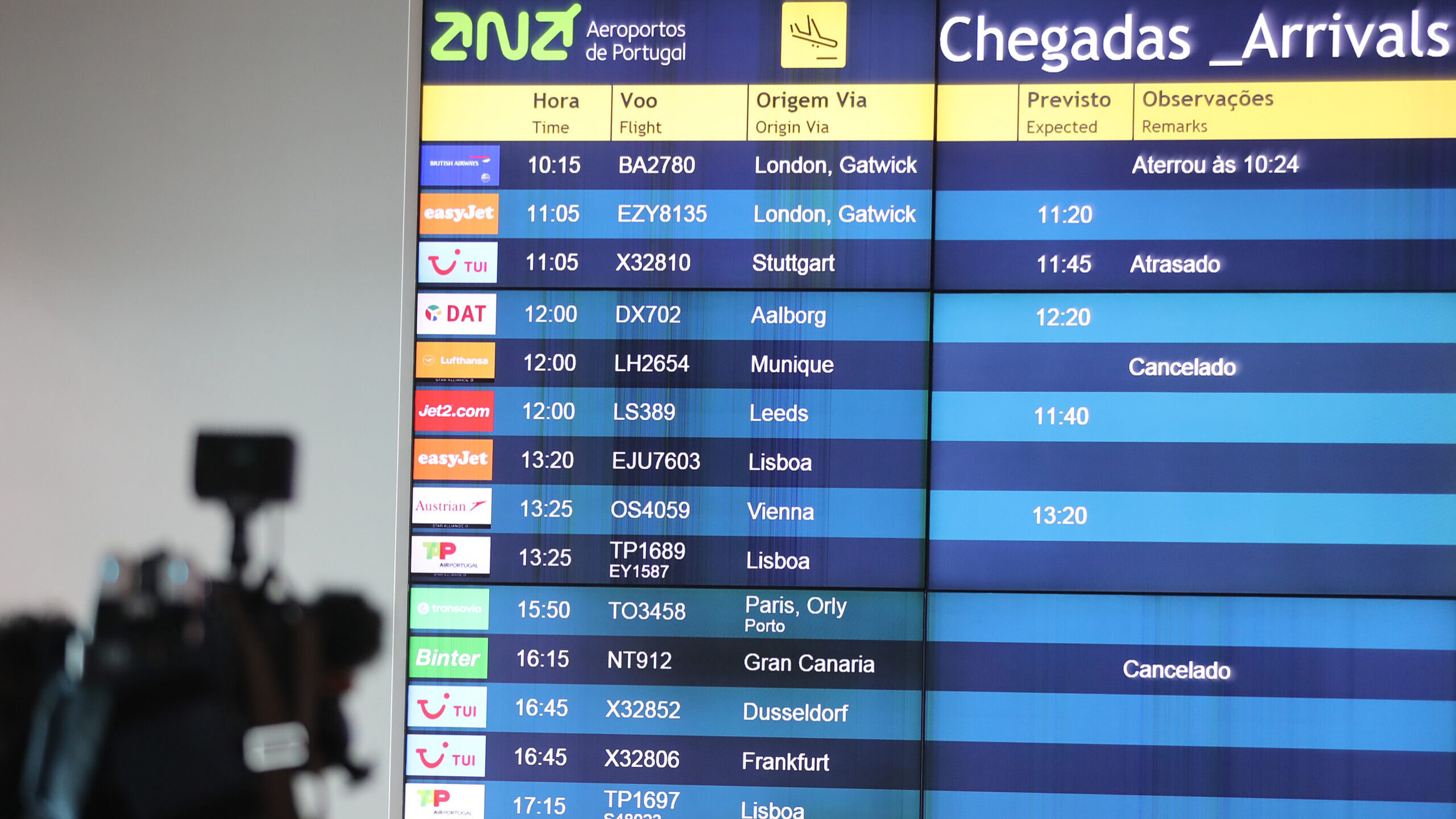 No que diz respeito às chegadas, foram cancelados voos da easyjet provenientes do Porto (08h15), Lisboa (9h00) e Milão (10h20).