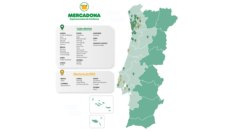 Com uma rede de 41 supermercados — 49 até ao final do ano –, em dez distritos, um bloco logístico operacional na Póvoa do Varzim e outro em construção em Almeirim para servir a expansão da rede no Centro e Sul do país, a Mercadona emprega mais de 3.500 pessoas em Portugal, tendo a sua atividade impacto na economia nacional.
