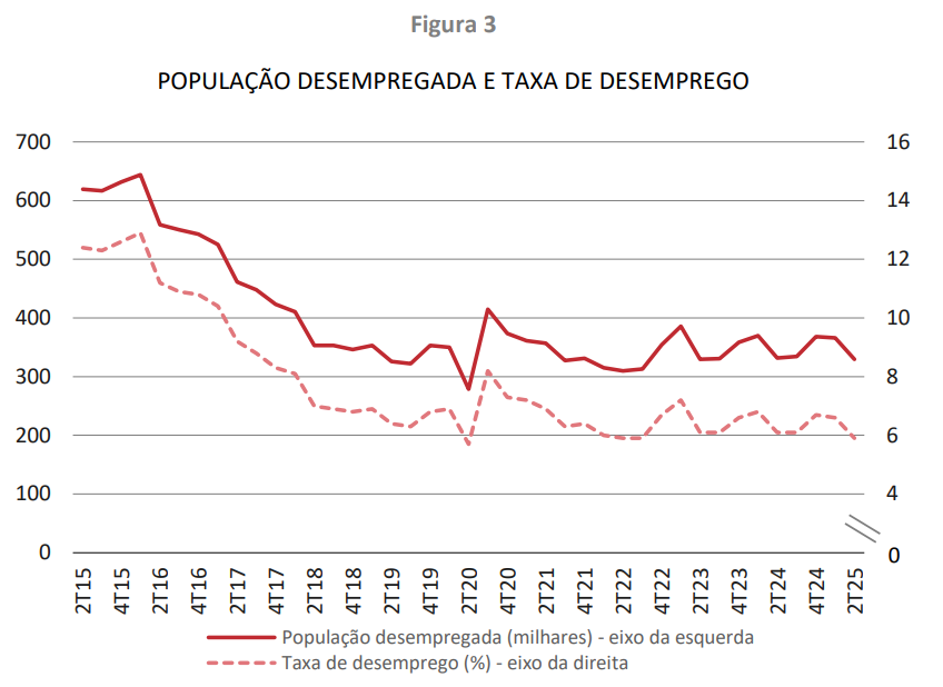 Taxa de desemprego fixou-se em 5,9% no segundo trimestre de 2025, o que corresponde a um recuo de 0,7 pontos percentuais face aos três meses anteriores.
