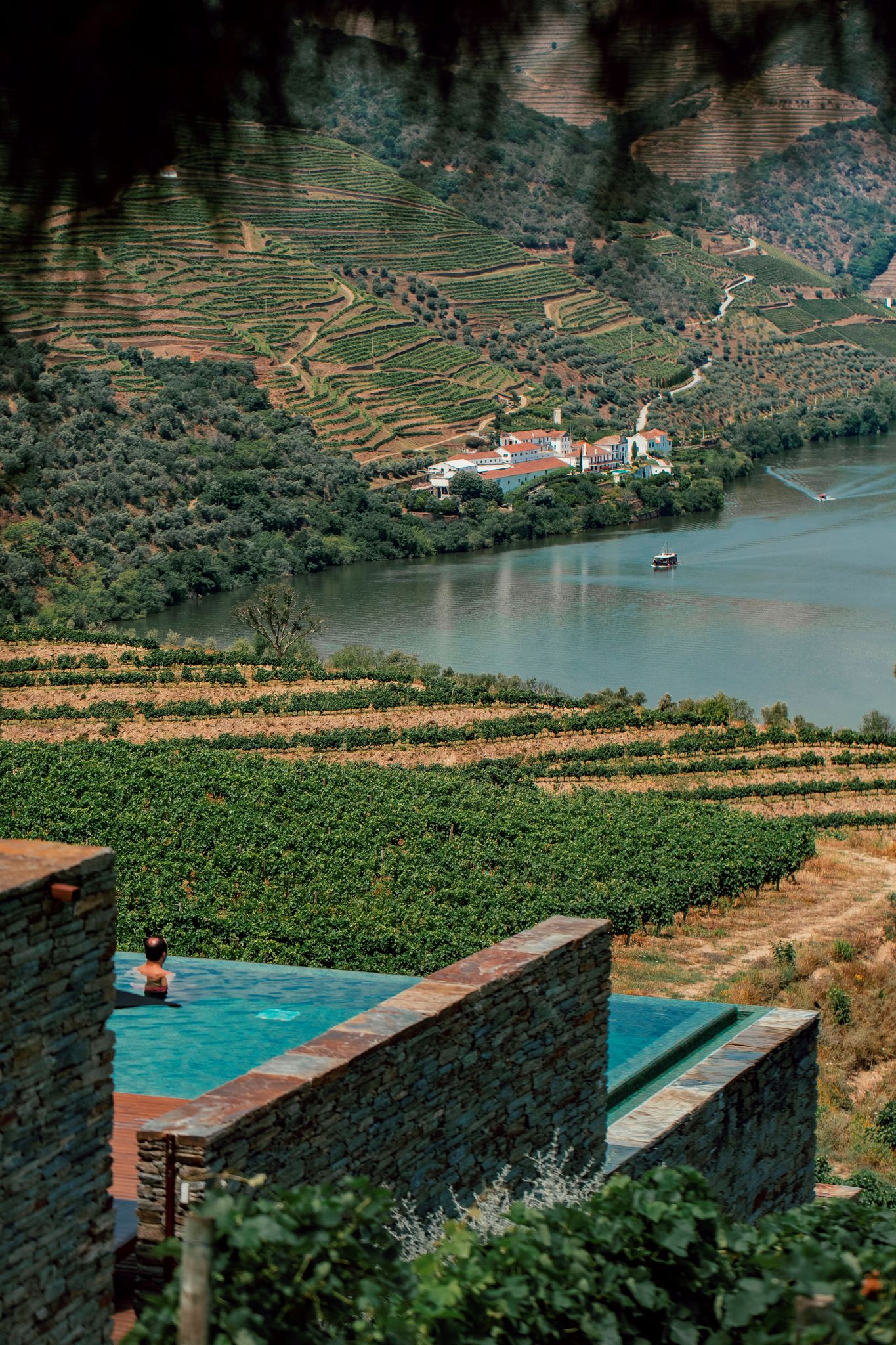 Rendemo-nos depois à piscina infinita, arrebatadora, com o rio Douro a correr lá ao fundo e a montanha a perder-se no horizonte.