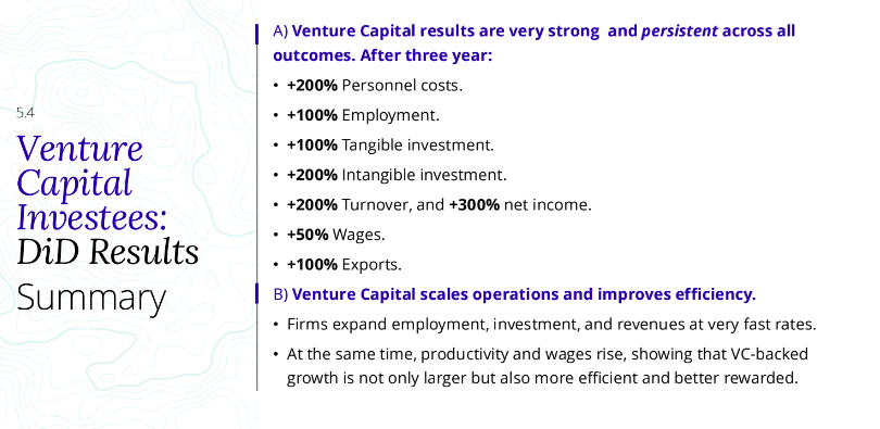 Os números apresentados pelo estudo assim o indicam. Após dez anos, 100 milhões de investimento de capital de risco tem um impacto de 1,01% no PIB, de 0,16% no investimento e um aumento de 22,87% no registo de patentes.