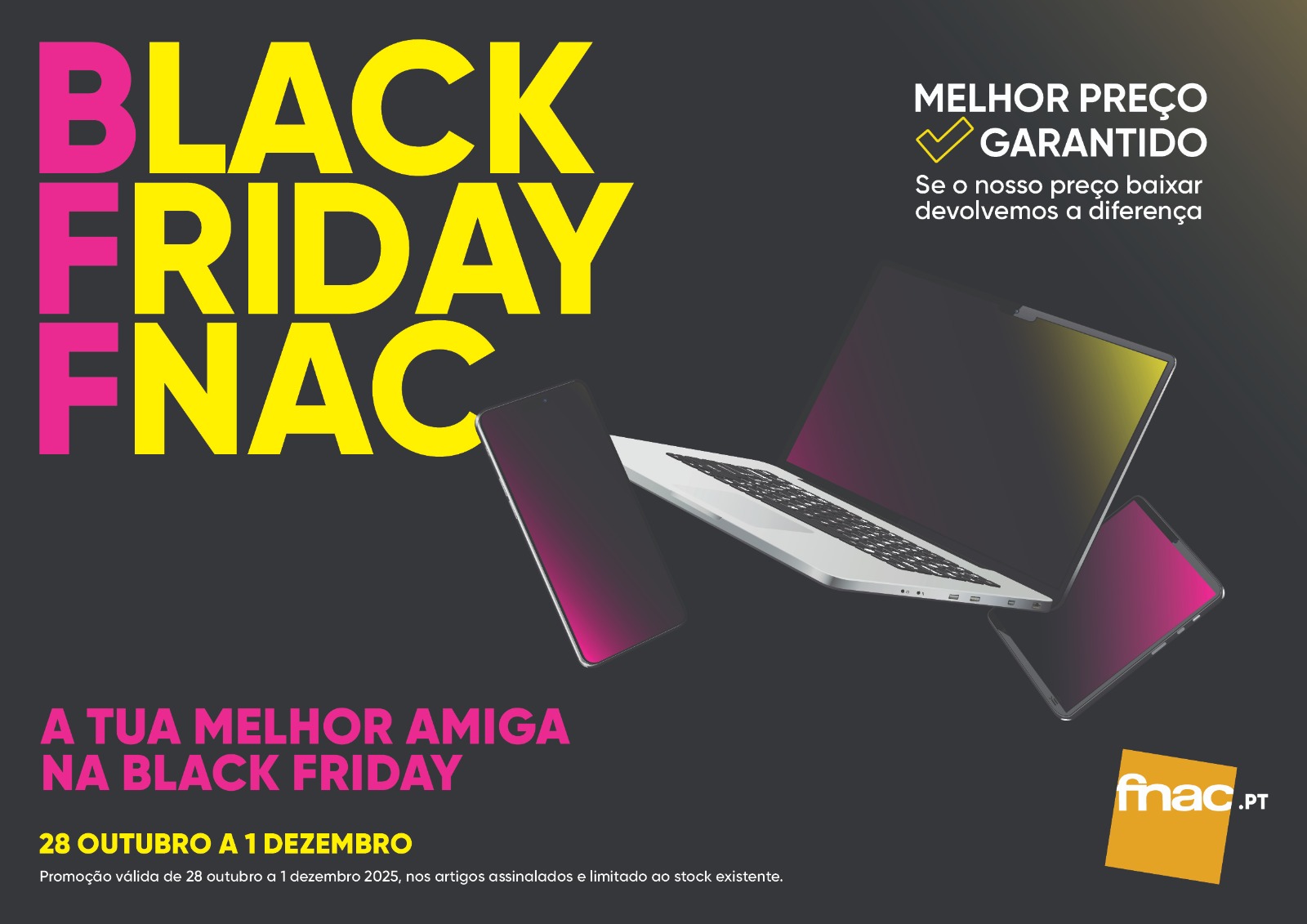 Sob o mote "A Tua Melhor Amiga na Black Friday", a Fnac assume o papel de uma "verdadeira BFF" abraçando este conceito ao oferecer descontos e condições especiais que se estendem por várias fases.