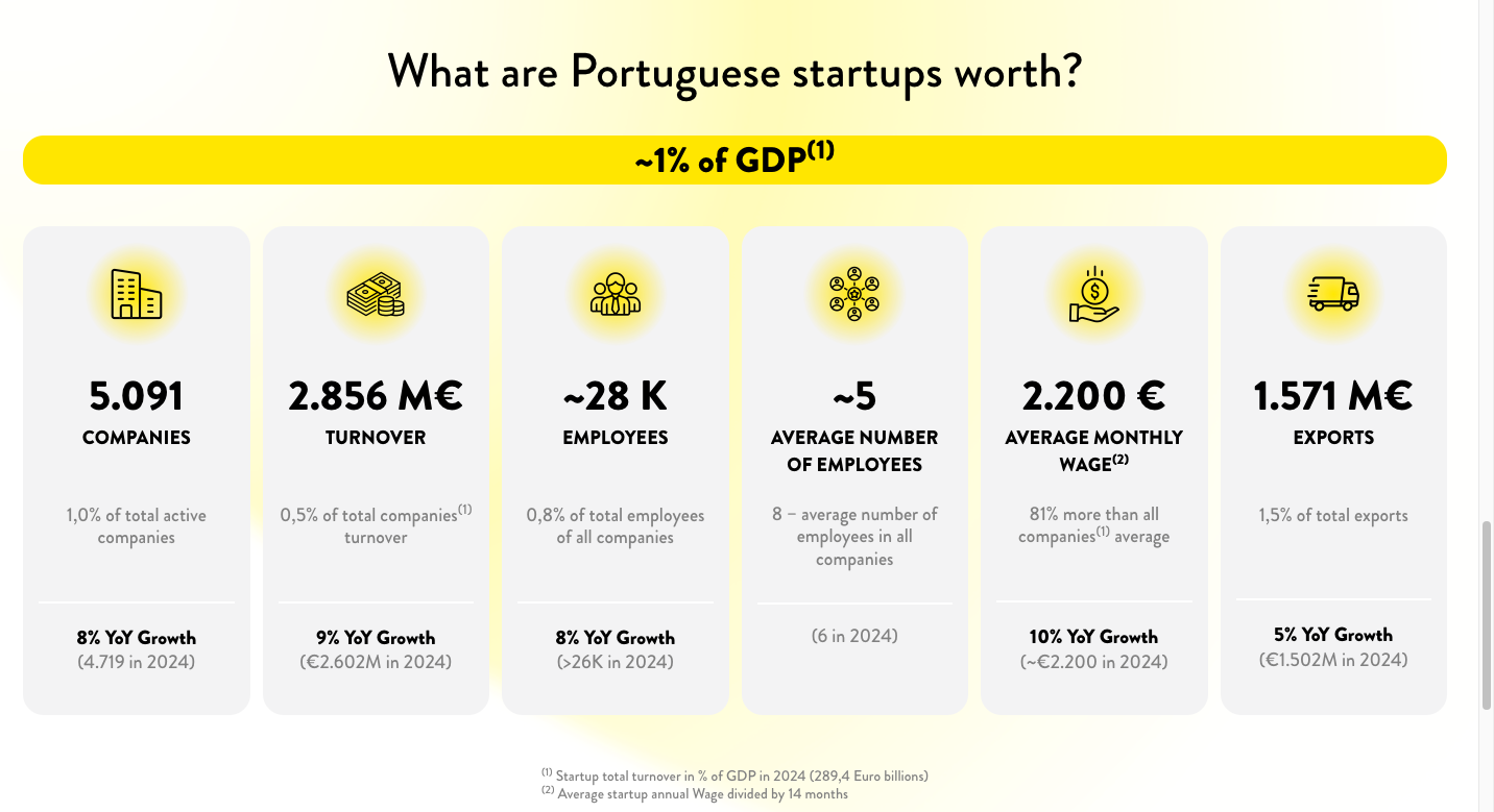 Portugal tem mais de cinco mil startups, mais 8% do que no ano passado, que empregam cerca de 28 mil pessoas, geram 2,8 mil milhões de euros em volume de negócios e exportam mais de 1,5 mil milhões, revela o relatório “Portugal’s Startup Ecosystem 2025: From Growth to Consolidation”, desenvolvido pela Startup Portugal em conjunto com a Informa D&B, divulgado esta quarta-feira, durante a Web Summit, em Lisboa.