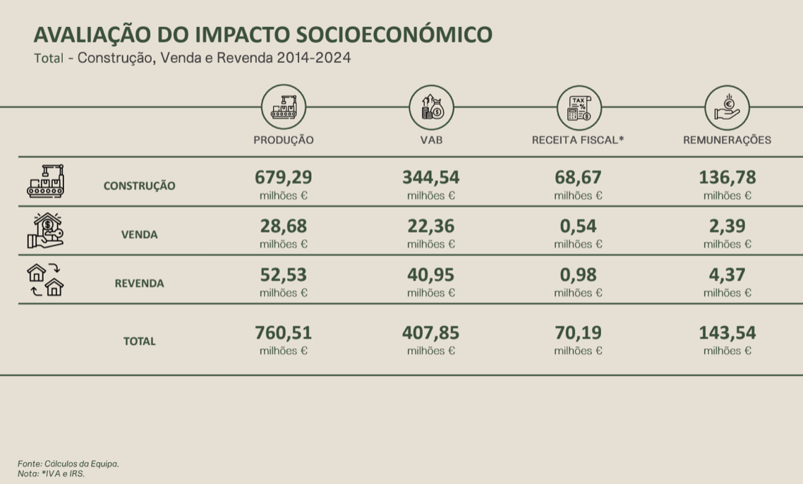 Durante a década em análise, o investimento (líquido de importações) em novas unidades licenciadas atingiu os 270,29 milhões de euros, enquanto a mediação imobiliária na venda e revenda de unidades terá sido de 58,76 milhões de euros.