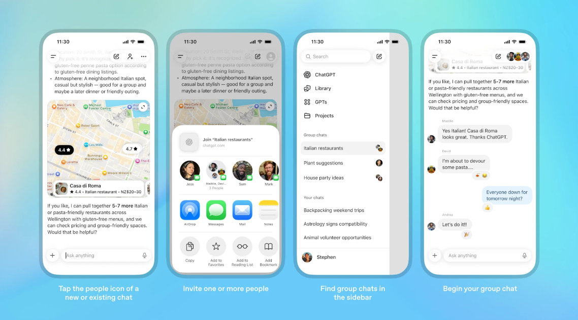 Nova funcionalidade a caminho: ChatGPT vai suportar conversas em grupo