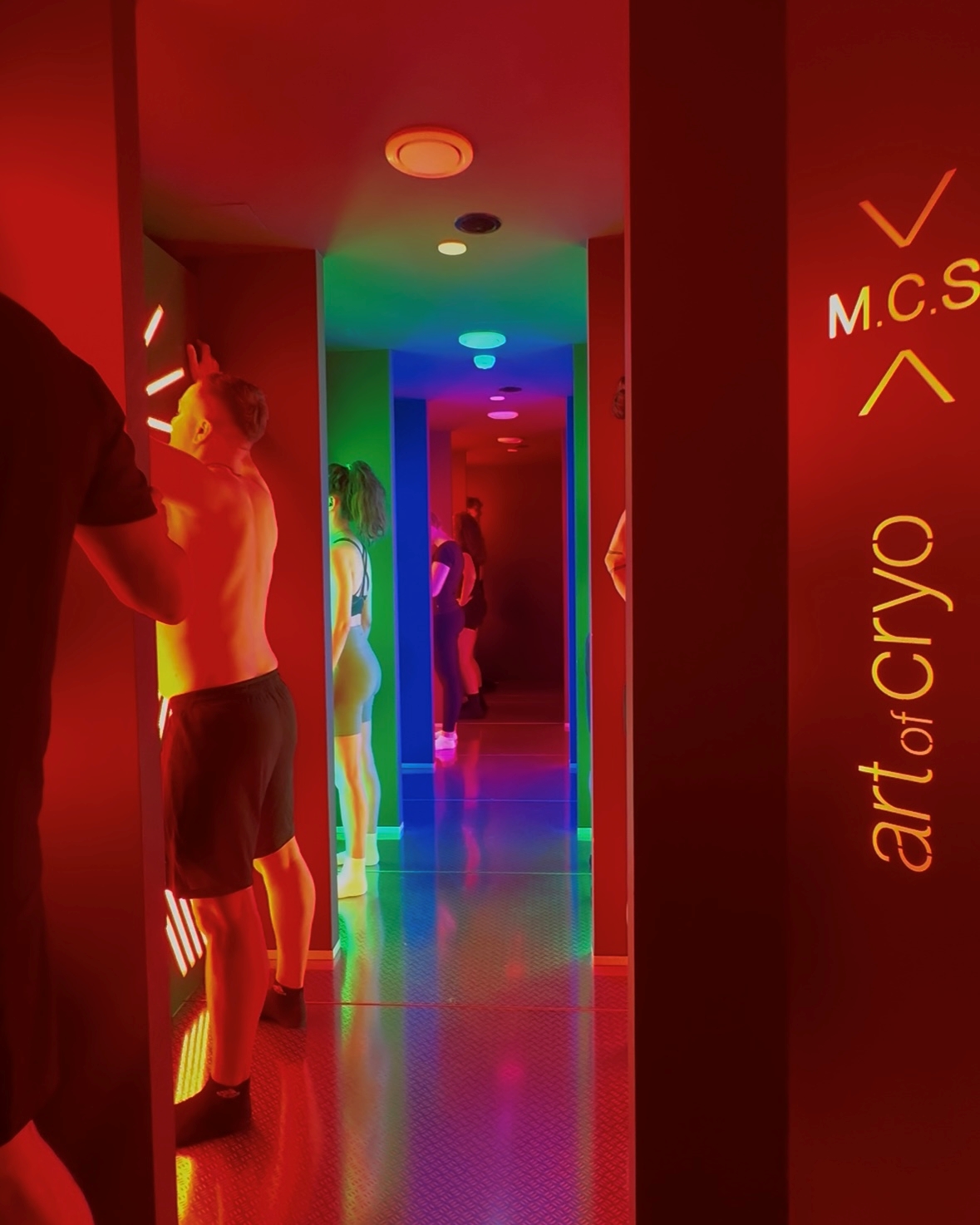 Segue-se um momento de relaxamento na câmara de luz infravermelha e oxigénio ionizado com aromaterapia ao som da chamada “frequência do amor”, para depois entrarmos na famosa câmara de crioterapia. Equipados com gorro, luvas e máscara, entramos numa primeira sala, onde ficamos durante uns segundos a 10 graus negativos, para depois seguirmos para outra onde a temperatura baixa aos 60 graus negativos até passarmos para uma terceira com menos de 110 centígrados.
