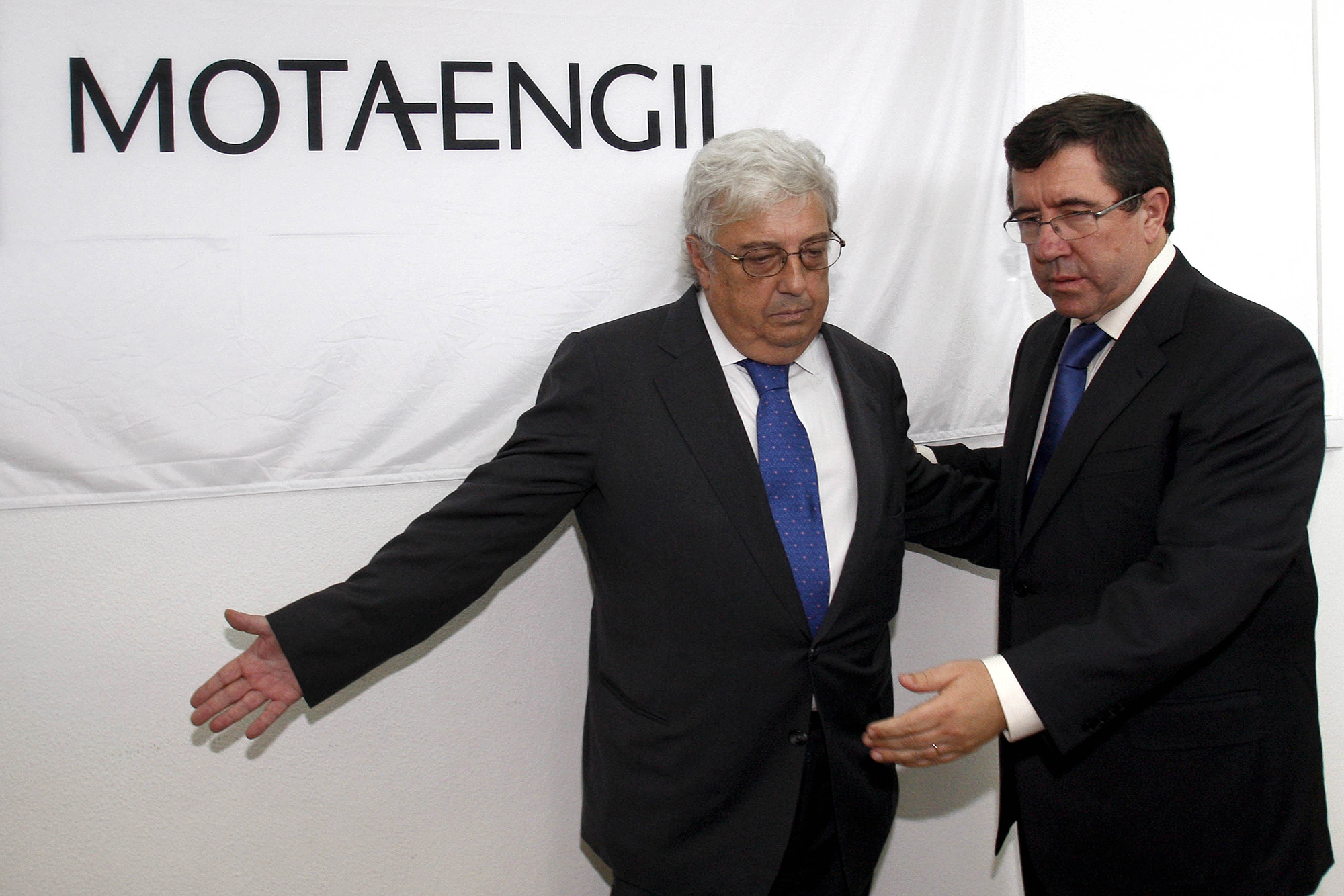 António Mota com Jorge Coelho depois da Assembleia Geral da Mota-Engil, no Centro de Formação do grupo, no Porto, 26 de Maio de 2008. ESTELA SILVA/LUSA -