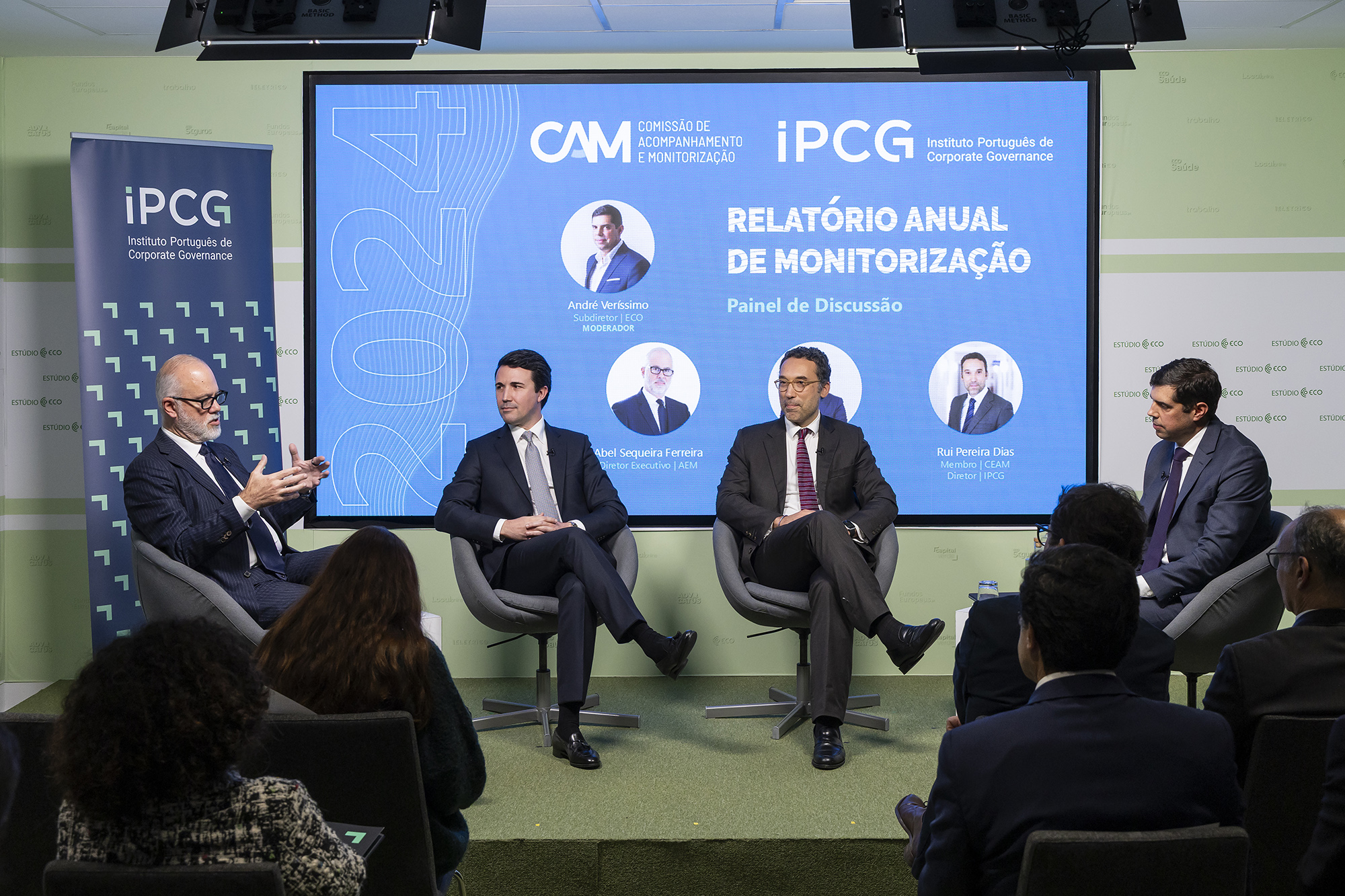 Debate com Abel Sequeira Ferreira, Diretor Executivo da AEM; Juliano Ferreira, Membro do Conselho de Administração da CMVM; e Rui Pereira Dias, Diretor do IPCG e Membro da CEAM