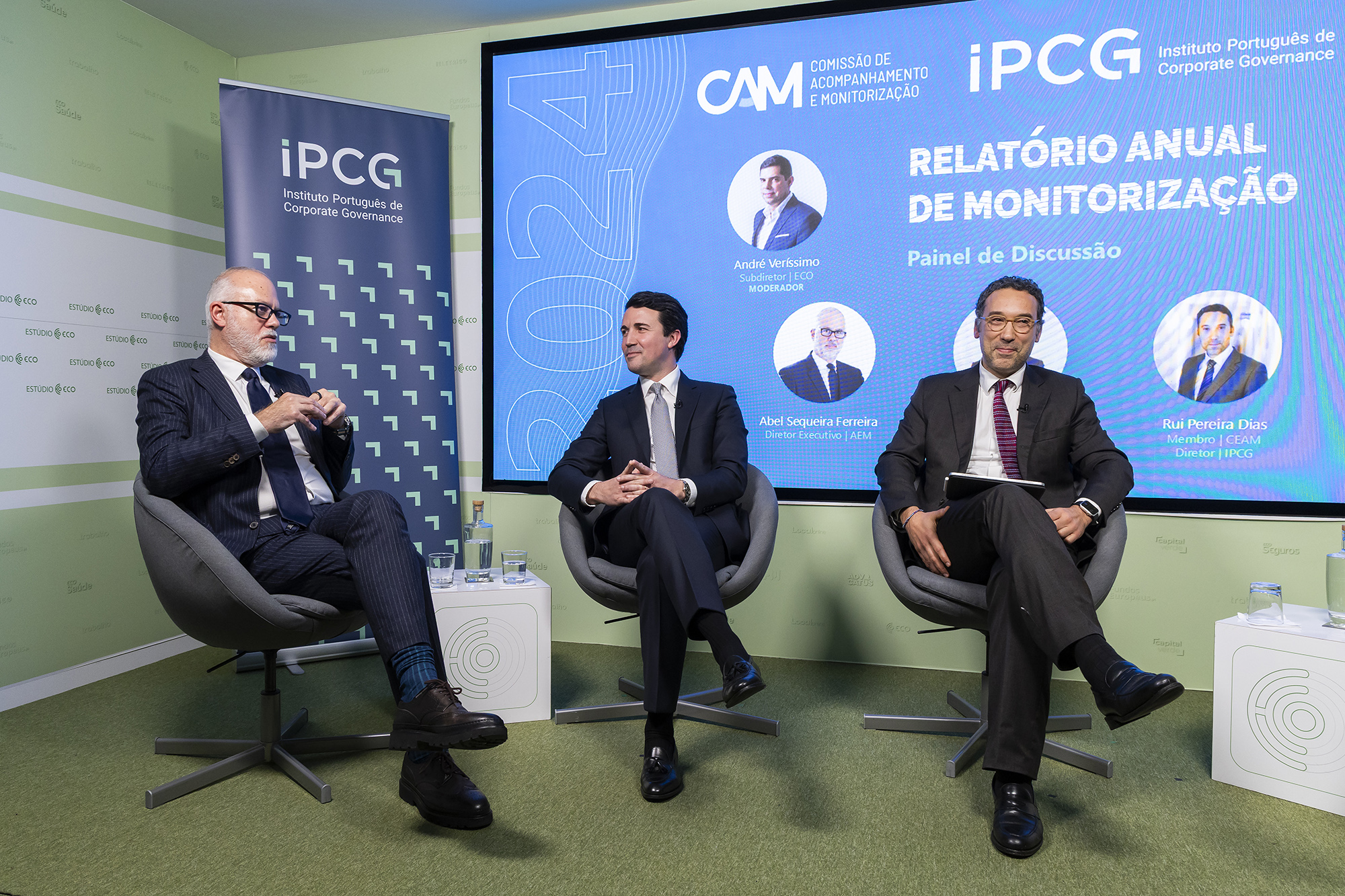 Debate com Abel Sequeira Ferreira, Diretor Executivo da AEM; Juliano Ferreira, Membro do Conselho de Administração da CMVM; e Rui Pereira Dias, Diretor do IPCG e Membro da CEAM -