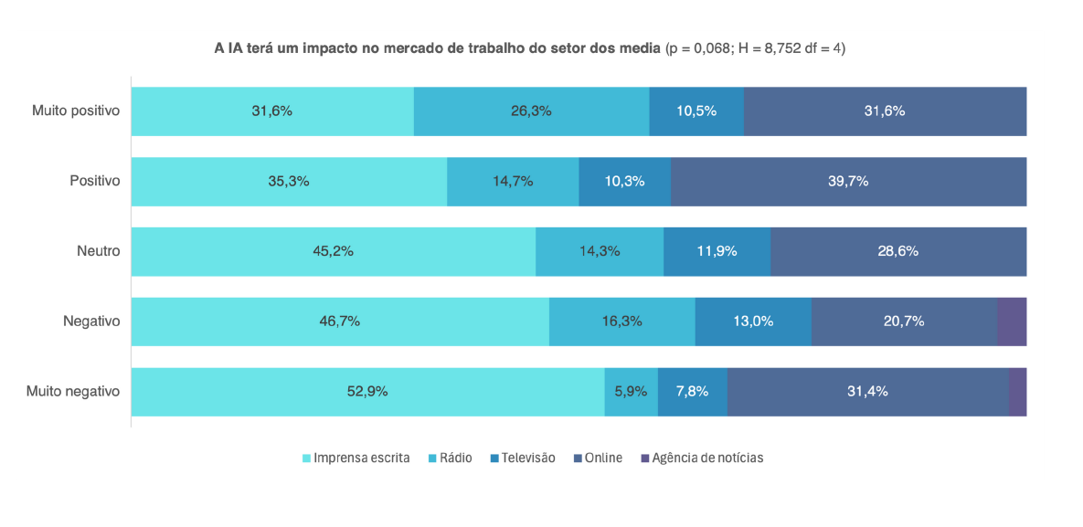 O Livro Branco destaca ainda o pessimismo do setor, com os profissionais de imprensa escrita (52,9%) a antecipar um impacto muito negativo no mercado de trabalho do setor. Por sua vez, é no online onde o impacto positivo tem um maior peso (31,6%).