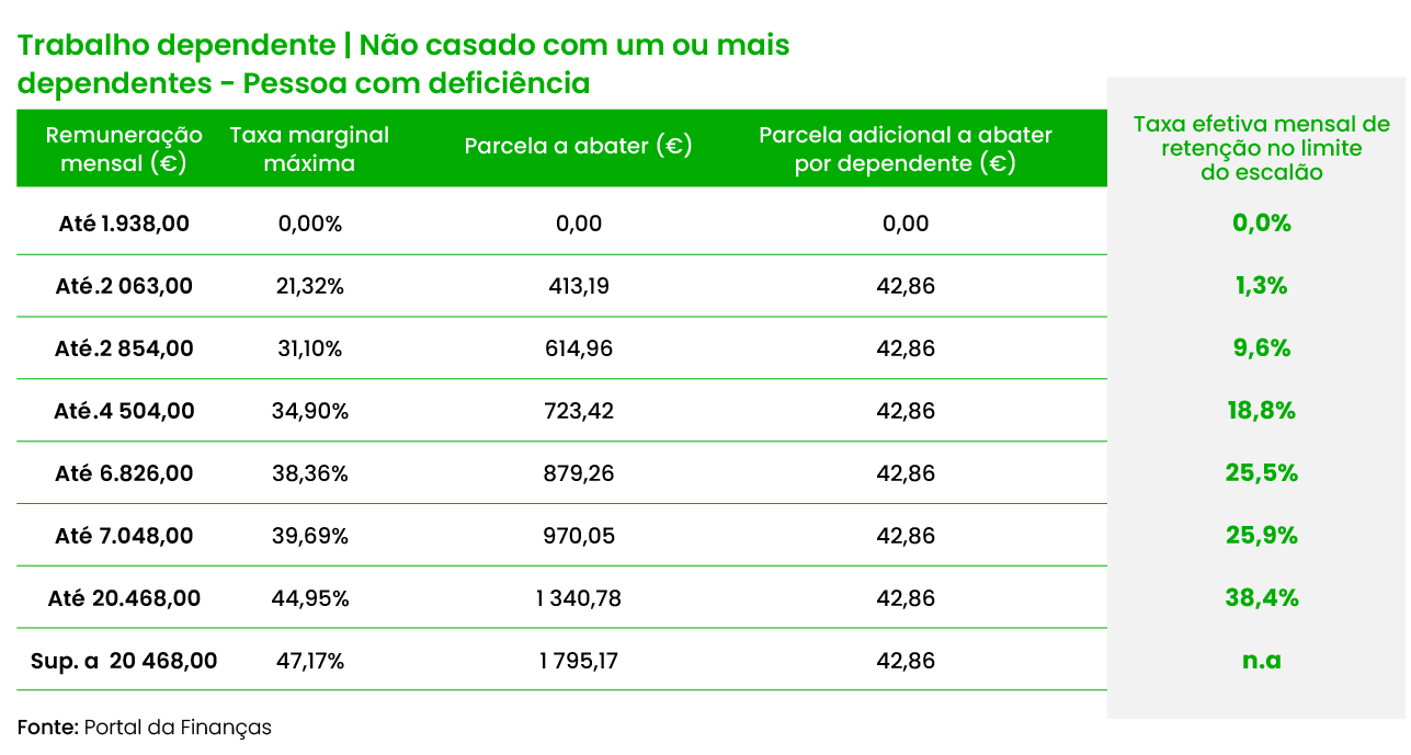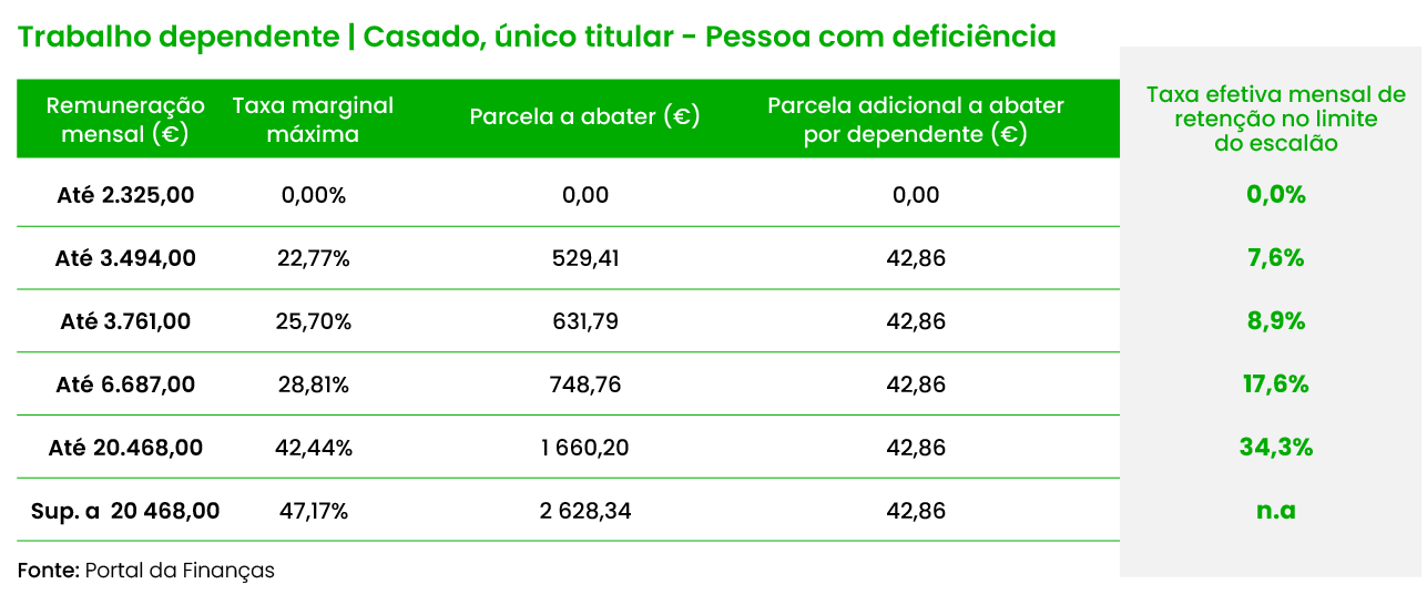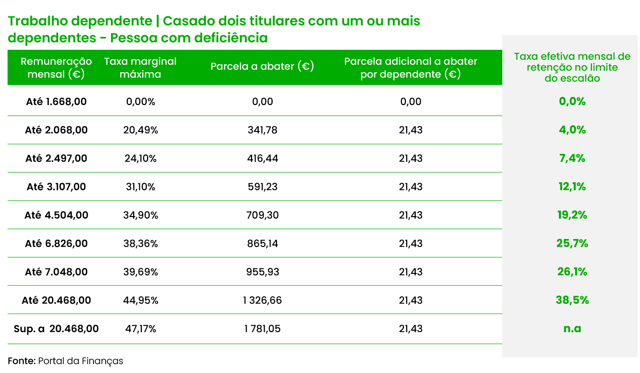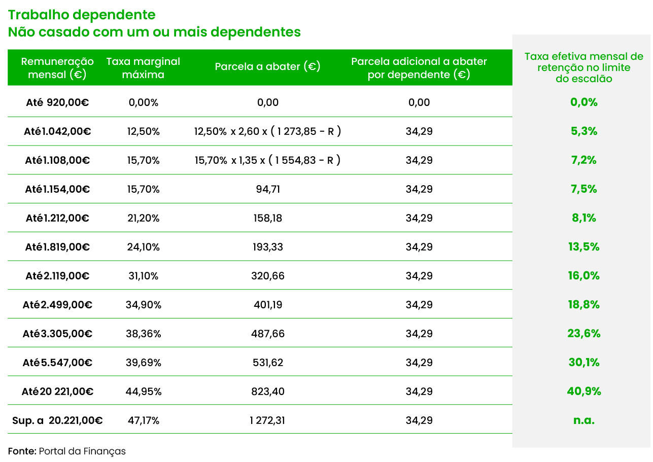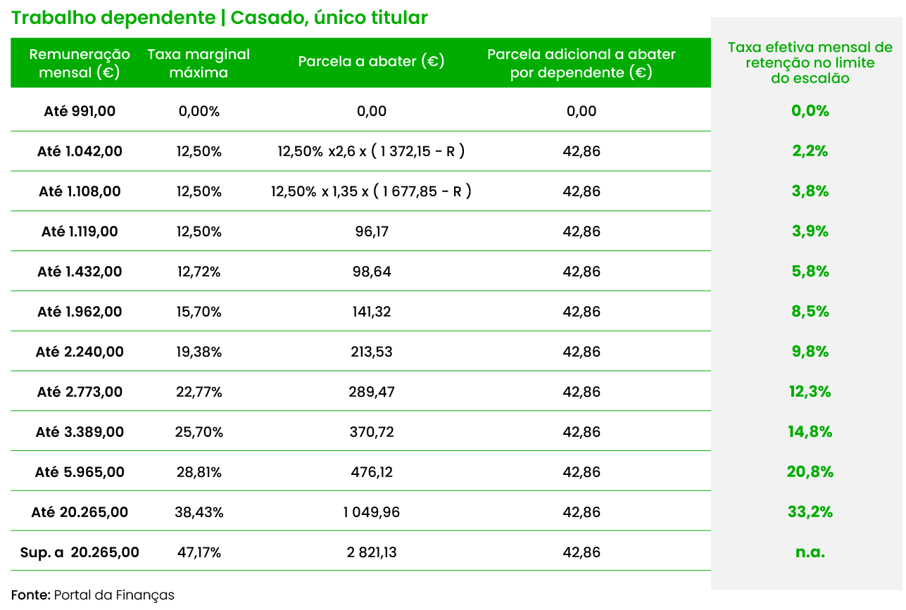 Primeiro, há que identificar em das mais de dez tabelas disponíveis se encaixa. É trabalhador dependente ou pensionista? É casado ou não? Tem filhos? É uma pessoa com deficiência? No topo de cada tabela, encontra a tipologia de contribuinte.