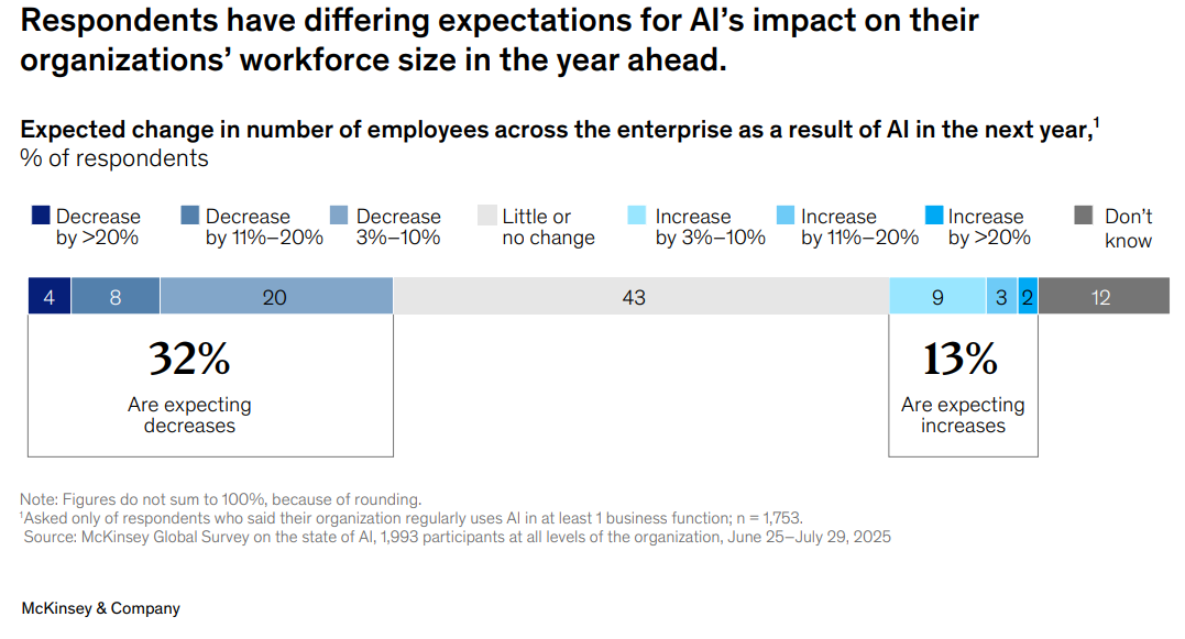 A propósito, importa referir um estudo recente da McKinsey & Company, que revelou que a maioria dos profissionais prevê que este ano a IA terá pouco ou nenhum impacto no tamanho das equipas que integram.
