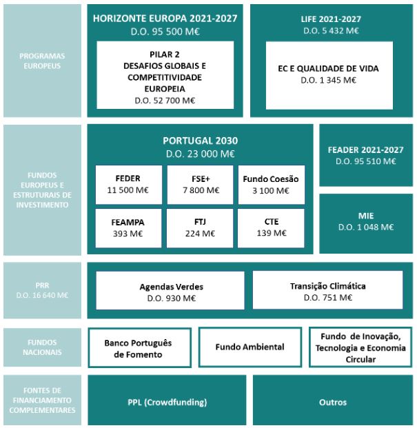O Plano de Ação para a Economia Circular, com ações a serem executadas até 2030, identifica fontes de financiamento que reúnem 175 mil milhões de euros.