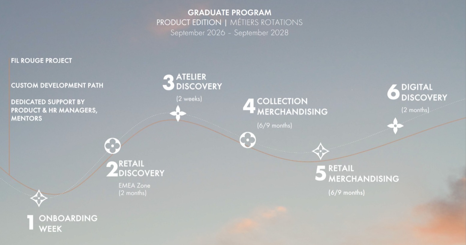 Aos candidatos pede-se que falem inglês fluente, que tenham um mestrado (ou equivalente internacional) ou licenciatura antes de 1 de setembro de 2026 e nenhum vínculo laboral com a LVMH ou as suas casas. Quem tiver terminado os estudos ou estágios entre janeiro de 2024 e junho de 2026 também se pode candidatar. Têm de estar disponíveis para se juntarem à maison no dia 1 de setembro, em Paris. Saber falar francês é valorizado na hora da seleção.