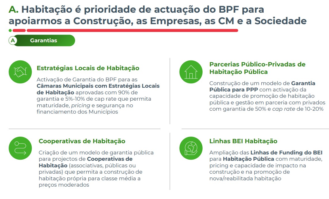 Em termos de apoios à habitação, haverá ainda o apoio a Parcerias Público Privas. Em cima da mesa estão dois modelos: o terreno é público, o licenciamento é público e quem constrói é uma empresa privada sendo que a gestão fica nas mãos dos privados ou do próprio Estado, ou seja, das câmaras.