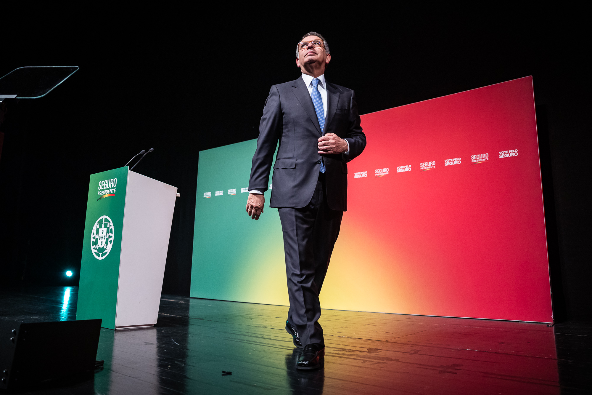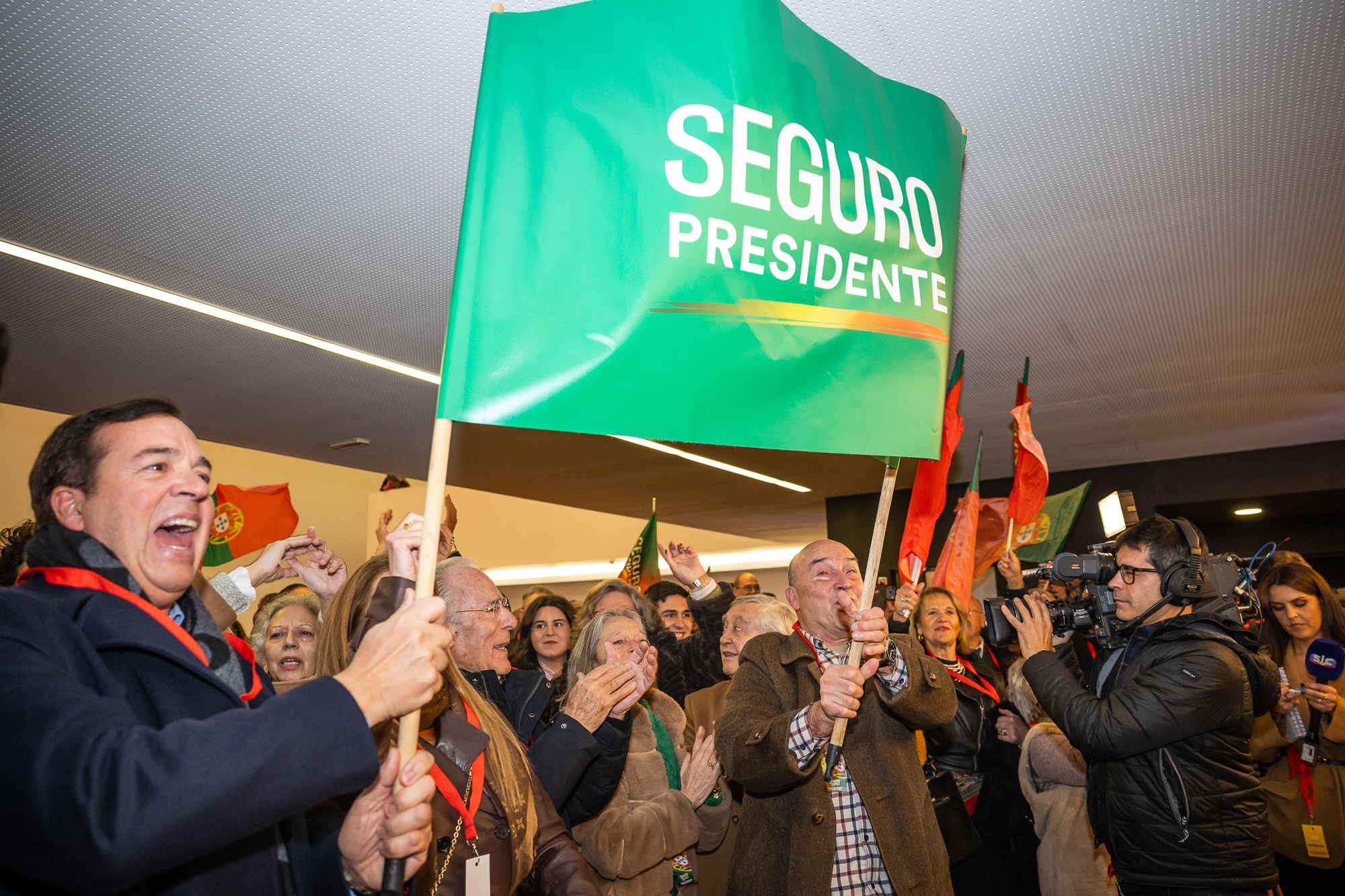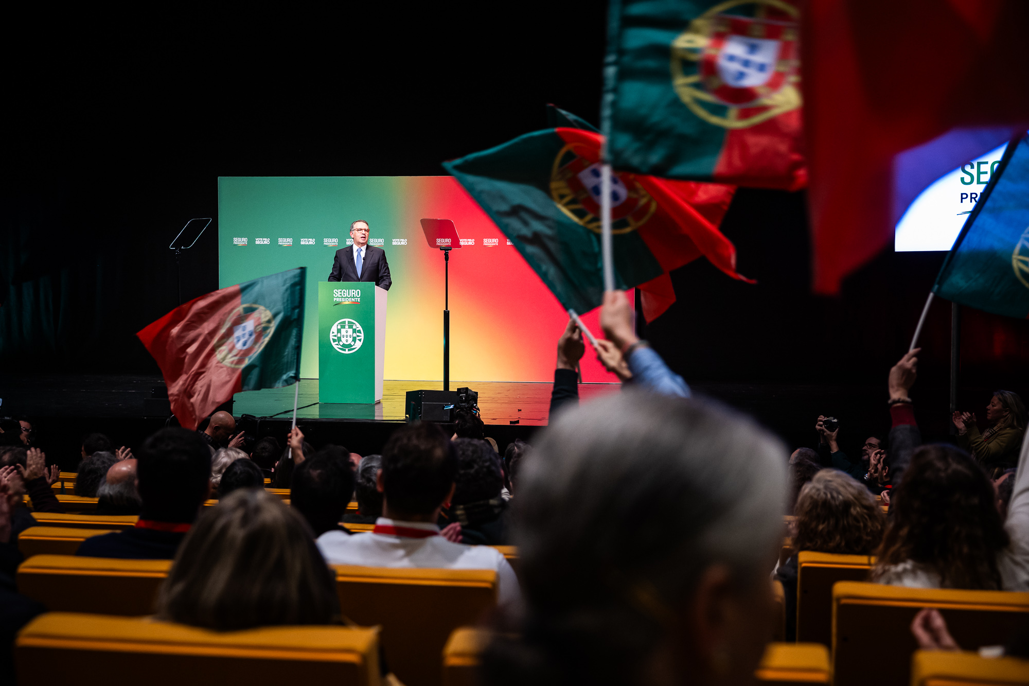 Eram 23h01 quando a voz-off veio dizer que só faltava ouvir André Ventura para que Seguro subisse ao auditório. “Candidato íntegro, candidato épico, és a nossa fé, força Seguro allez”, cantava-se em ritmo de claque de futebol para manter a “equipa” animada para o apogeu, a chegada de António José Seguro.
