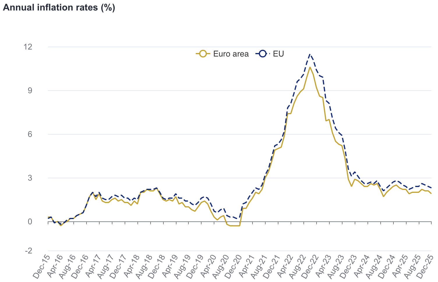 Taxa de inflação homóloga dos Estados-membros da UE em dezembro de 2025