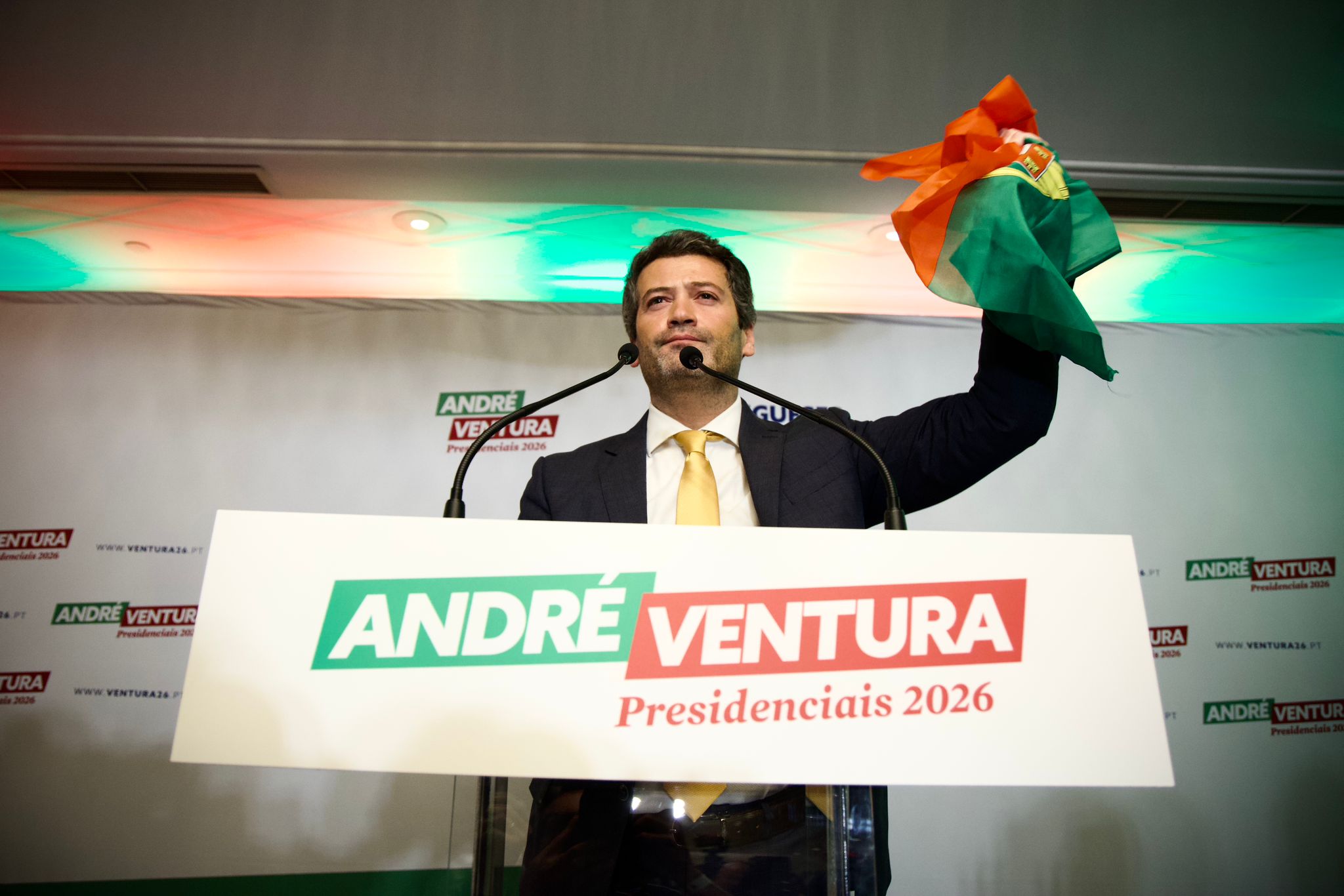 André Ventura ficou em segundo lugar nesta primeira volta das eleições presidenciais com 23,53% dos votos, quando faltava, apurar 0,24% dos votos, correspondentes a oito consulados.