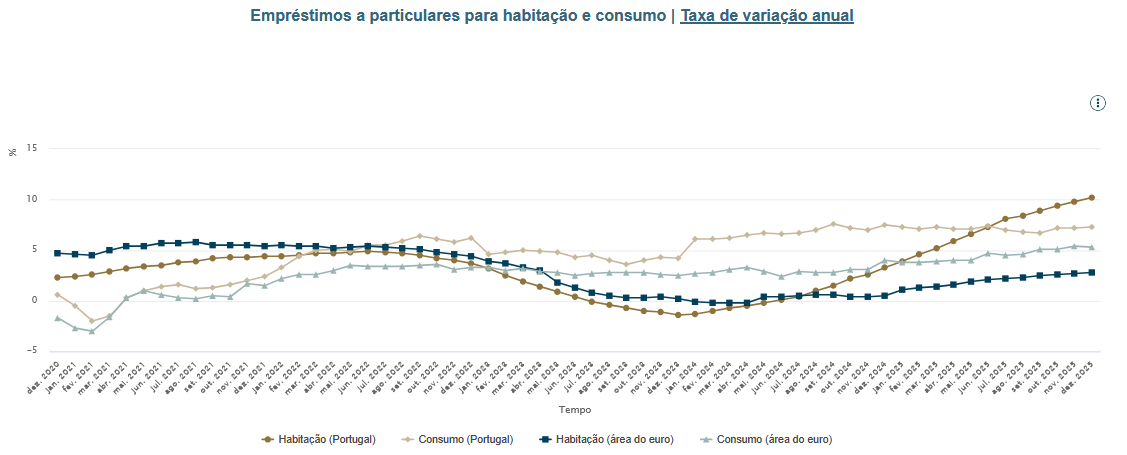 Mas não foi apenas no crédito à habitação que os portugueses recorreram mais ao financiamento bancário. O crédito ao consumo e outros fins também teve um ano de forte crescimento. O Banco de Portugal revela que “os empréstimos ao consumo atingiram 21,2 mil milhões de euros, mais 1,1 mil milhões do que no final de 2024”, que refletiram um aumento de 7,3% no ano passado, que compara com um crescimento de 7,5% no ano anterior.