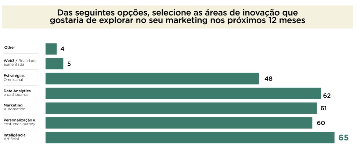 O estudo revela ainda que a IA é vista como altamente relevante nas estratégias, com uma avaliação média de 8,8 em dez. É também a área de inovação que mais equipas de marketing gostariam de explorar nos próximos 12 meses.