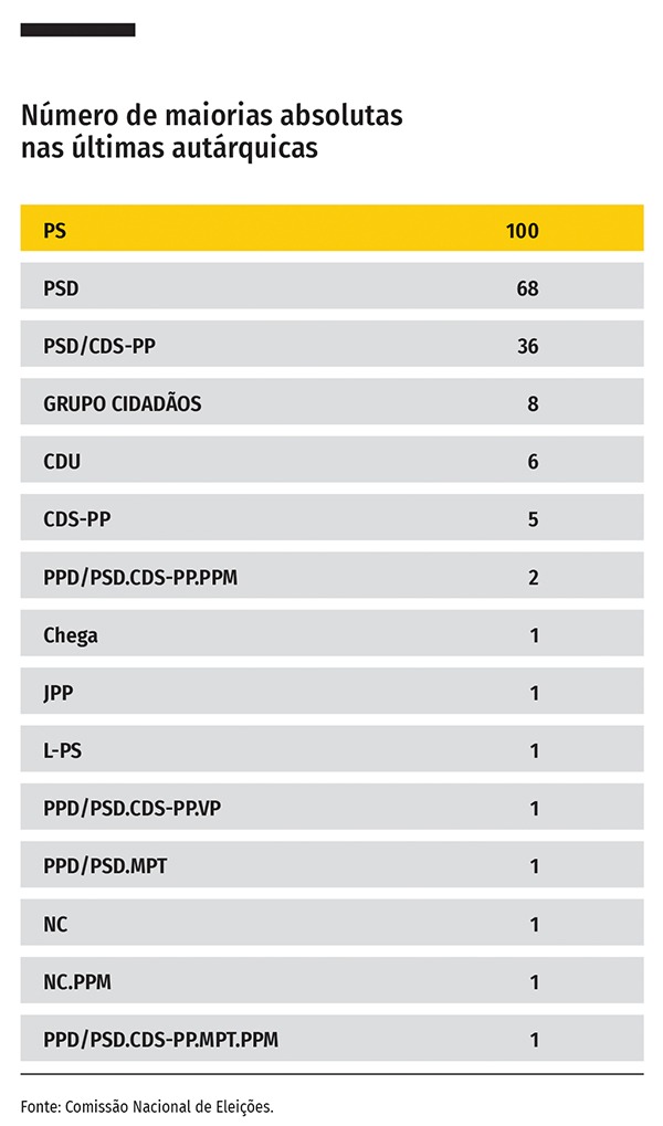 Maiorias absolutas obtidas nas autárquicas