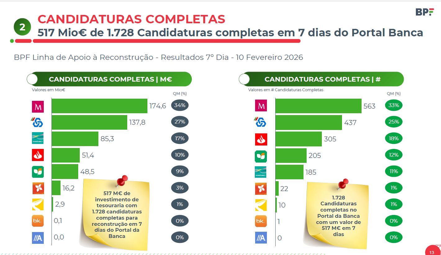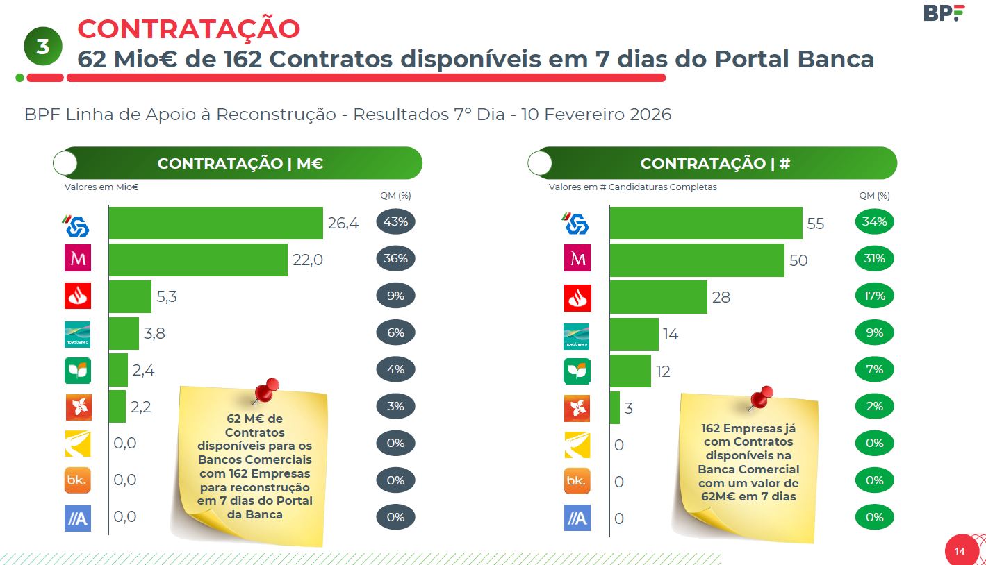 Além disso, o responsável anunciou aos deputados que na terça-feira “já havia 162 empresas com 62 milhões de euros com contratos emitidos por seis bancos, os cinco maiores bancos do país e o Crédito Agrícola, que tem um peso muito substantivo na região”.