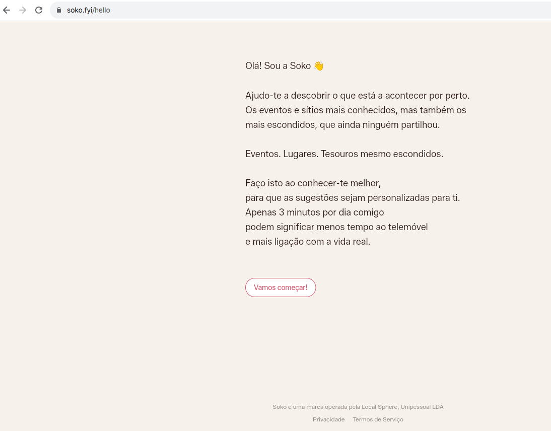 Ainda em fase piloto, a Soko funciona como um “guia local com quem podes conversar para descobrir o que fazer perto de ti em minutos e torna-se mais personalizada quanto mais a usas”, explica João Graça. Atualmente, funciona em dois canais complementares.