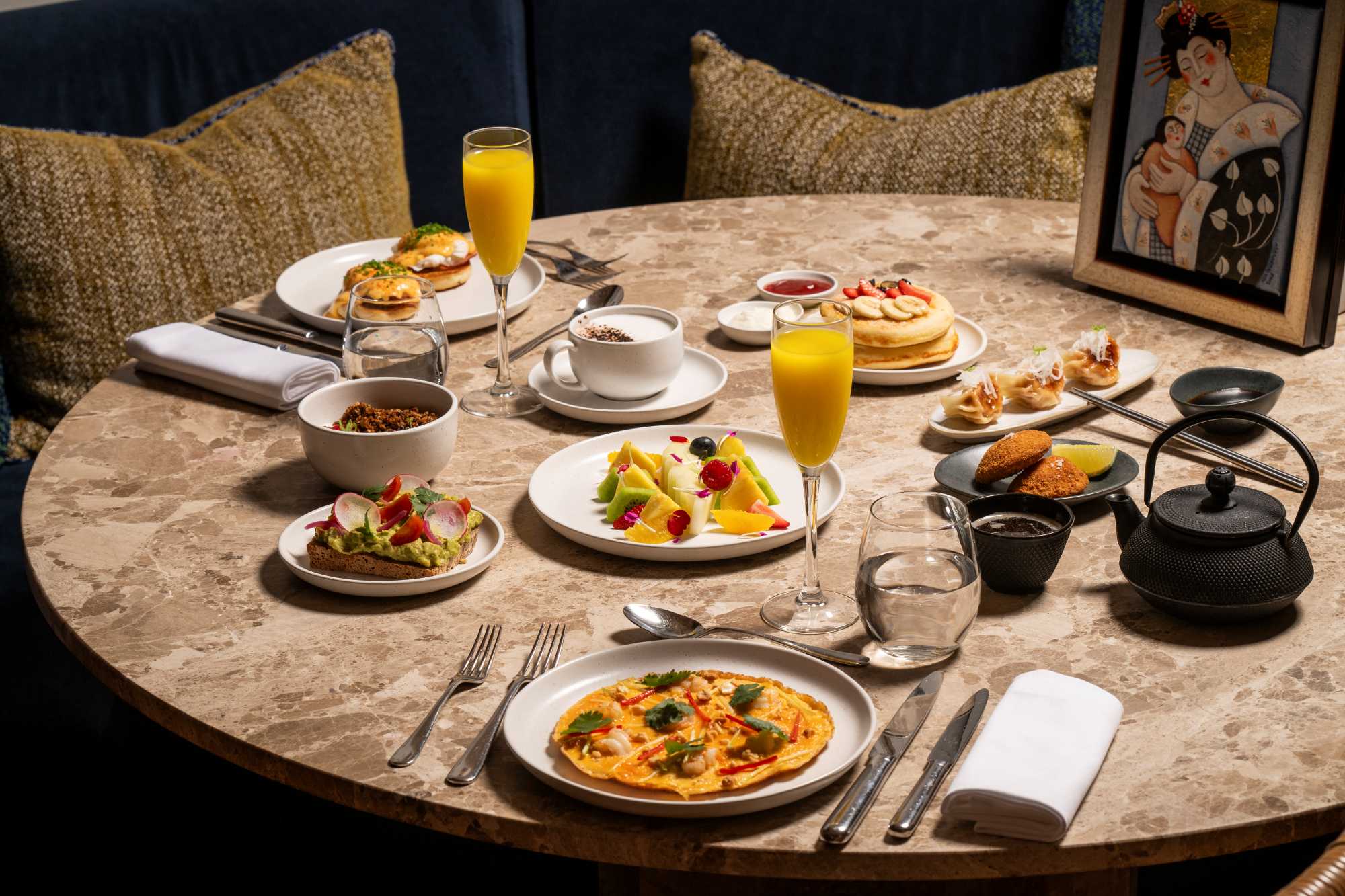 No Palácio do Governador, em Lisboa, o brunch de fim de semana é um cruzamento entre o clássico (se é que o conceito existe quando se fala de bruch) ea cozinha asiática, assinado pelo chef André Santos, responsável pela identidade gastronómica do restaurante Po Tat. Está disponível aos sábados e domingos, entre as 12h30 e as 16h00, e a carta inclui cogumelos ostra grelhados com molho de inhame e amendoim, rissóis de lula e berbigão à Bulhão Pato e as asas de frango com sambal de camarão.