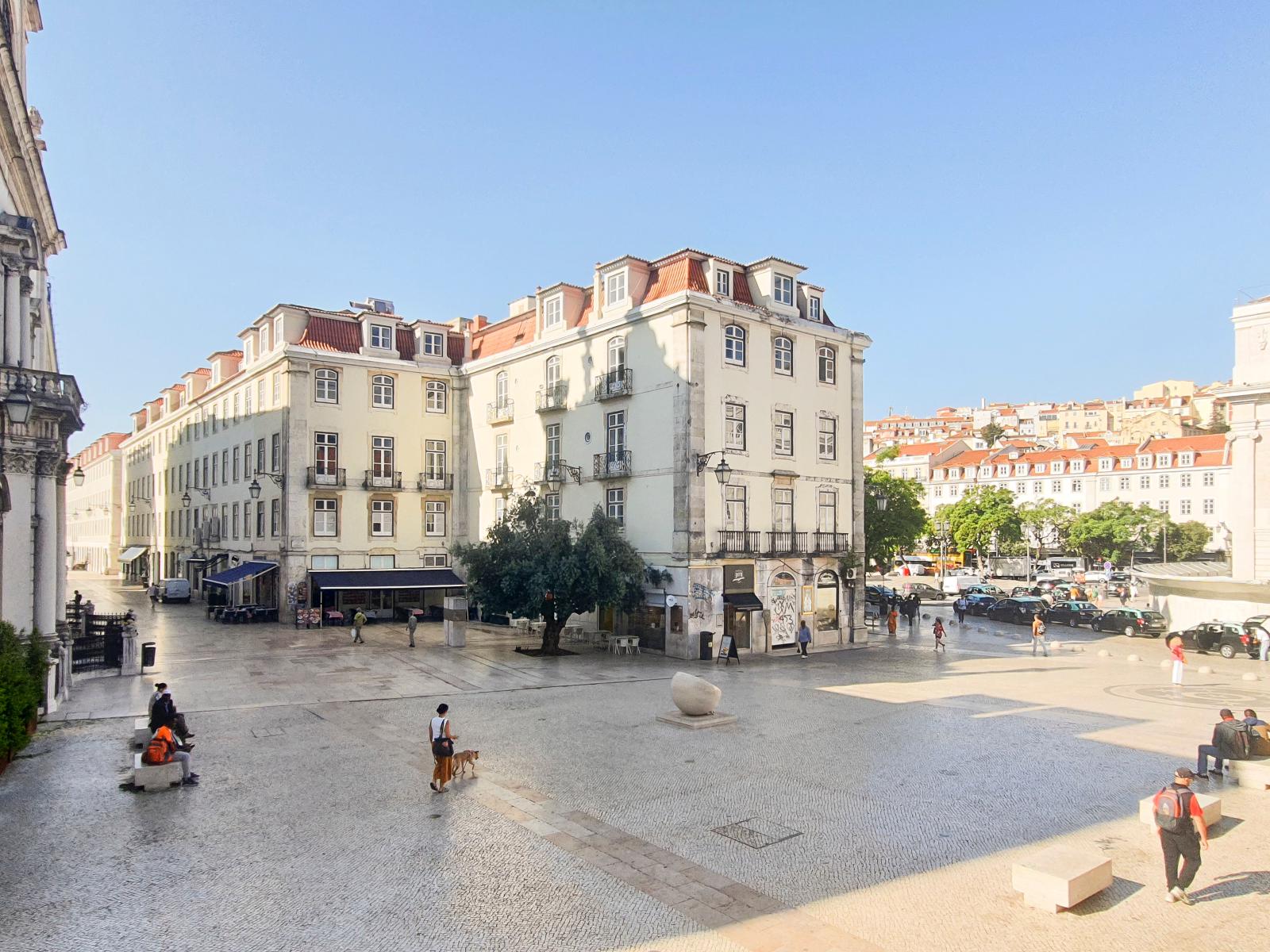 Só vamos ocupar do primeiro ao quarto piso. As lojas mantêm-se abertas. Portanto, o primeiro piso vai ser o piso mais social e com um espaço de coworking, para nómadas digitais ou se alguém quiser ir trabalhar durante um dia. E depois temos mais três pisos com escritórios fechados. Ainda não está bem fechado qual o espaço que cada hub vai ocupar, ou se vamos ter mais do que um hub. Mas o edifício é incrível. Todos os escritórios têm muita luz natural, ou para o lado da Praça do Rossio, ou para o lado do Largo de São Domingos, e para a Igreja de São Domingos, ou para a Rua do Coliseu.