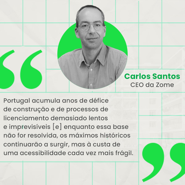 Carlos Santos da Zome coloca o dedo na ferida, notando que “o problema não é conjuntural, é estrutural. Portugal acumula anos de défice de construção e de processos de licenciamento demasiado lentos e imprevisíveis”, salientando que “enquanto essa base não for resolvida, os máximos históricos continuarão a surgir, mas à custa de uma acessibilidade cada vez mais frágil. Um mercado saudável não é apenas aquele que cresce, é aquele que é sustentável social e economicamente”.
