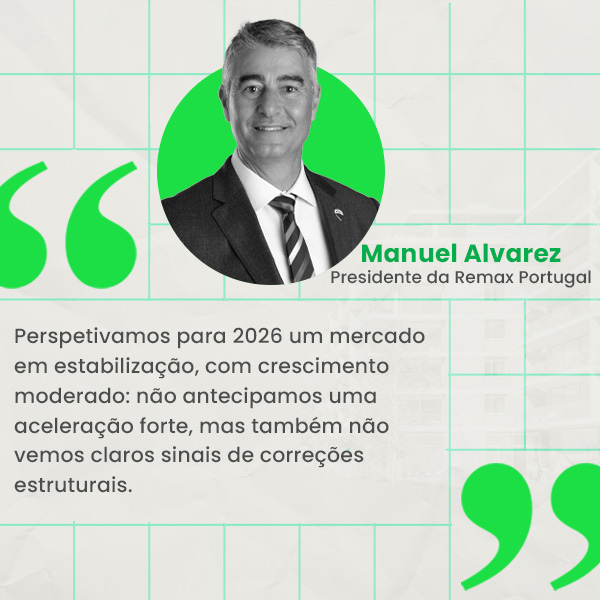 “O facto de 2025 registar crescimentos no número de transações, nos preços e no volume de investimento é sinal de que Portugal continua a ser atrativo para investimento internacional e de que o imobiliário mantém-se como ativo de refúgio face à volatilidade de outros mercados“, afirma Manuel Alvarez.