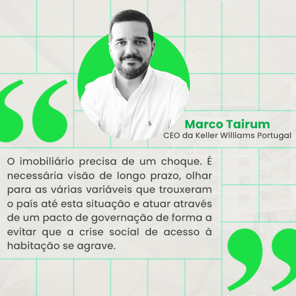 Para Marco Tairum, da KW Portugal, que das cinco é a que apresenta o preço médio mais elevado (261.359 euros), a solução para equilibrar os preços das casas não passa por medidas pontuais. “O imobiliário precisa de um choque. É necessária visão de longo prazo, olhar para as várias variáveis que trouxeram o país até esta situação e atuar através de um pacto de governação de forma a evitar que a crise social de acesso à habitação se agrave”.