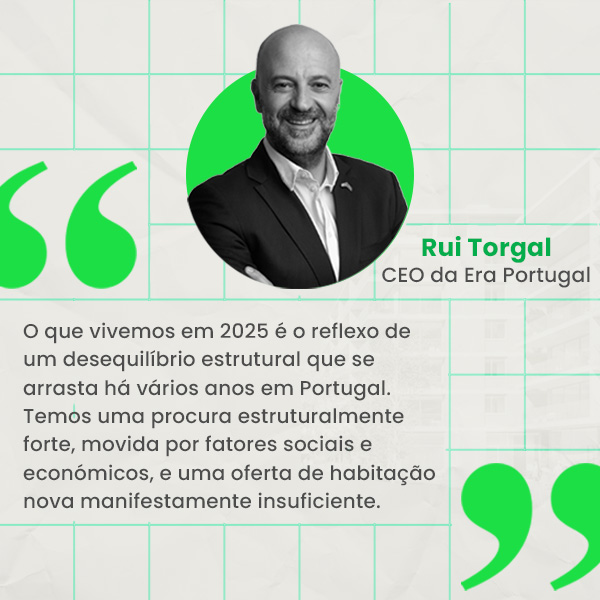 A rede intermediou 13.400 transações em 2025 (+9,8%), num valor global de 2,5 mil milhões de euros (+25%), com um preço médio de 235.280 euros, mais 17,3% do que em 2024. Na leitura de Rui Torgal, CEO da Era, os números são reflexo de uma tensão acumulada. “O que vivemos em 2025 é o reflexo de um desequilíbrio estrutural que se arrasta há vários anos em Portugal. Temos uma procura estruturalmente forte, movida por fatores sociais e económicos, e uma oferta de habitação nova manifestamente insuficiente”.