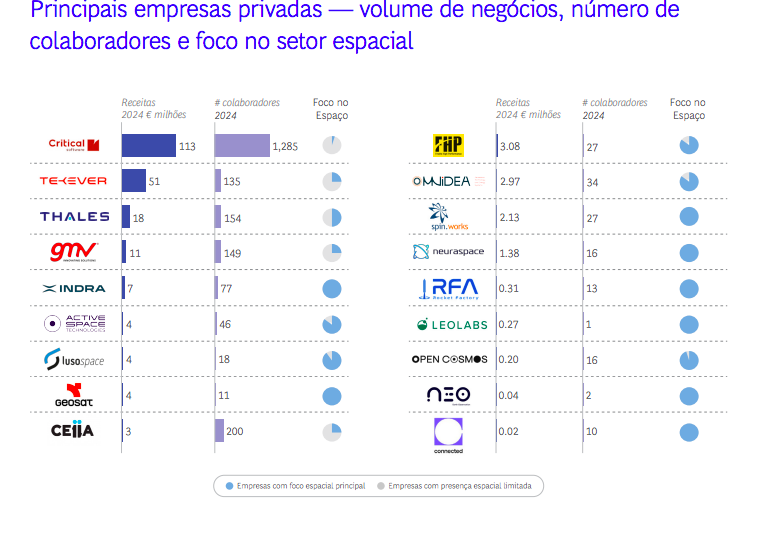 - A indústria espacial portuguesa cresceu 40% em número de empresas e 50% em emprego entre 2019 e 2023, mas ainda representa apenas 0,03% do PIB nacional.