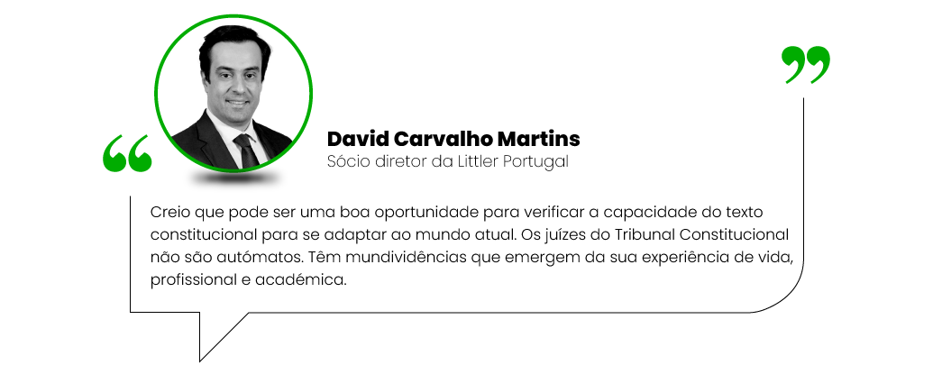 Se para as sócias da SRS não existem dúvidas constitucionais em algumas medidas, para David Carvalho Martins podem. O sócio da Littler Portugal aponta exemplos como em sede de instrução do processo disciplinar, da reintegração em caso de despedimento ilícito e da regulação da greve. “Contudo, creio que pode ser uma boa oportunidade para verificar a capacidade do texto constitucional para se adaptar ao mundo atual. Os juízes do Tribunal Constitucional não são autómatos. Têm mundividências que emergem da sua experiência de vida, profissional e académica. Contudo, espera-se que do seu conjunto seja possível, de forma segura e determinada, ultrapassar bloqueios ideológicos e anacrónicos”, refere.