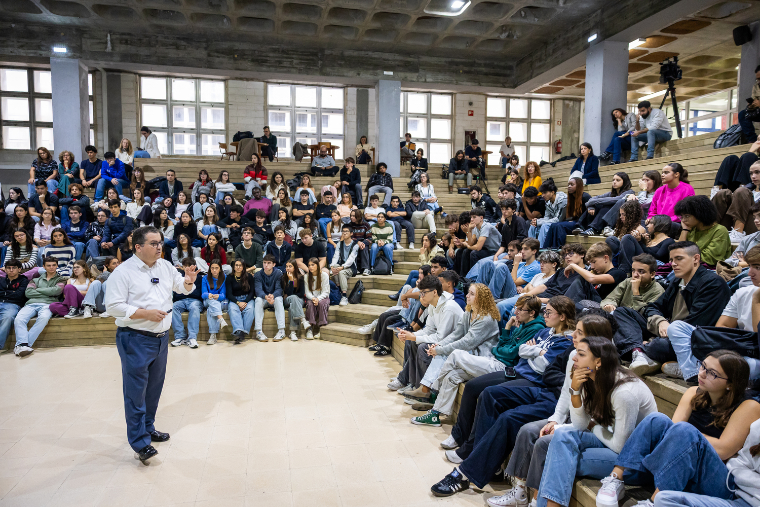 Mas nem tudo correu conforme o planeado na aula do líder da ASF. Durante a sessão, a luz do auditório falhou. Não uma, mas duas vezes. Gabriel Bernardino lidou com a situação com humor, mas a ironia era evidente: num dia em que se falava de planeamento e previsão, até a infraestrutura da escola (ou as bruxas, não fosse também dia de Halloween) decidiu pregar uma partida.