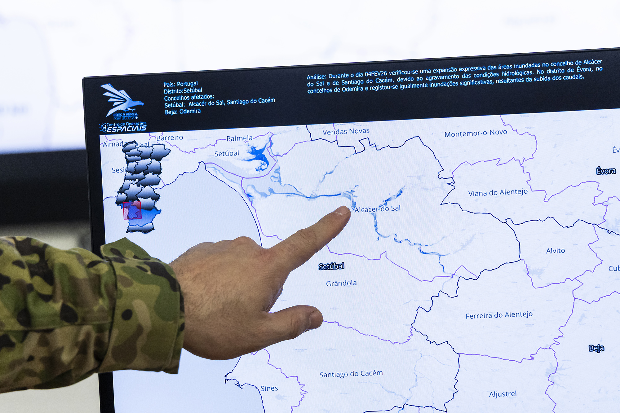 Essa é a vantagem de “ferramentas que nos permitem ter uma visão da situação mais abrangente e não limitada”, diz. “No terreno, efetivamente, conseguimos uma precisão maior, mas a nossa visão está limitada. Quando estamos com uma imagem de satélite de vários quilómetros, conseguimos ter uma imagem mais abrangente da situação”, destaca. “Ontem [quarta-feira] foi-nos pedido atenção particular na zona do Mondego, Vouga. Mas há momentos pediram-nos Alcácer do Sal”, relata.